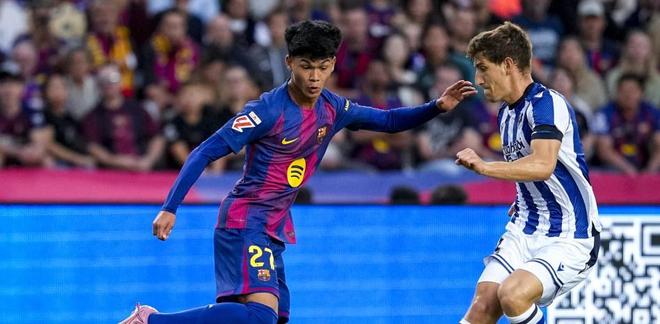 雷速体育9月29日讯 北京时间今天凌晨,年仅17岁的巴塞罗那新星德罗迎来职业生涯高光时刻——他在对阵皇家社会的比赛中首发出场,完成了一线队正式比赛的处子秀。此役,巴萨在主帅弗里克的带领下,以2-1力克对手,反超皇马登顶西甲积分榜榜首。