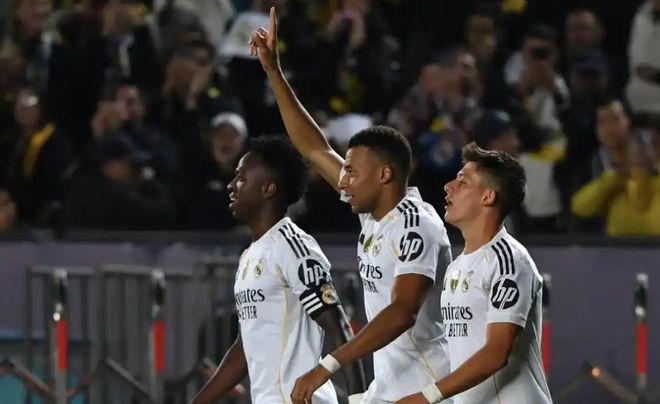 长途飞行不耽误!皇马5-0横扫欧冠新军,姆巴佩帽子轻松又写意