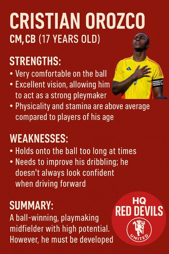 意大利转会专家法布里济奥·罗马诺证实,曼联已经签下哥伦比亚17岁中场球员克里斯蒂安·奥罗斯科(Cristian Orozco)。他将在2026年7月年满18岁时,正式从哥伦比亚国内俱乐部福塔雷绍查加盟红魔。